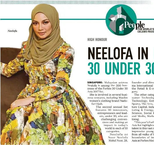 Pressreader The Star Malaysia 2017 04 14 Neelofa Among 300 To Make It To Forbes 30 Under 30 List